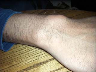 This is the picture where he was trying to convince me that the arm with the bandage is actually now longer than the arm without the bandage.